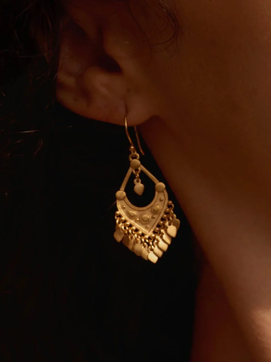 Unveil your beauty and shine your light in the world. Delicate chandelier earrings in 18kt gold plate shimmer and shine as their petals move and catch the light.